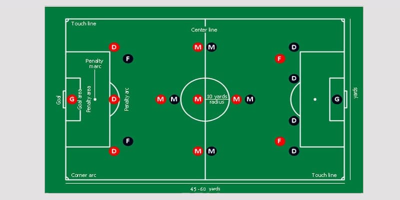 Selain memahami berapa meter panjang lapangan sepak bola mini, garis pembatas juga harus dibuat dengan jelas dengan lebar garis 8cm. Titik tengah ditentukan tepat di tengah garis lapangan, lalu dibuat lingkaran dengan jari-jari 3m yang mengelilingi titik pusat tersebut.